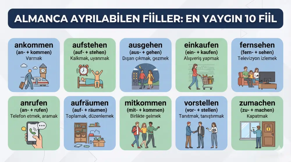 Almanca Ayrılabilen Fiiller Listesi (50 Adet)