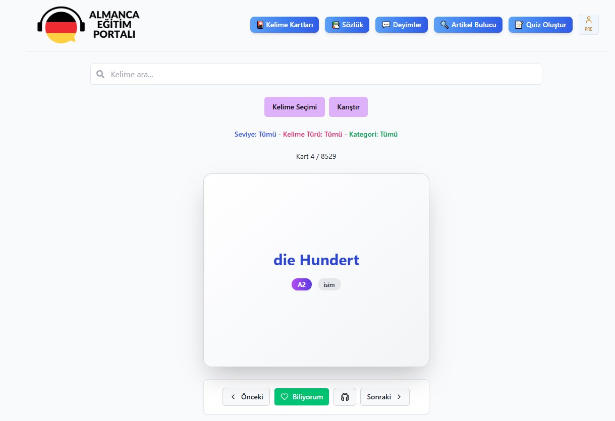 İşte tam da bu ihtiyaçlardan yola çıkarak geliştirdiğimiz Almanca Kelime Uygulaması, modern teknolojiyi dil öğrenmeyle buluşturan bir platform sunuyor.